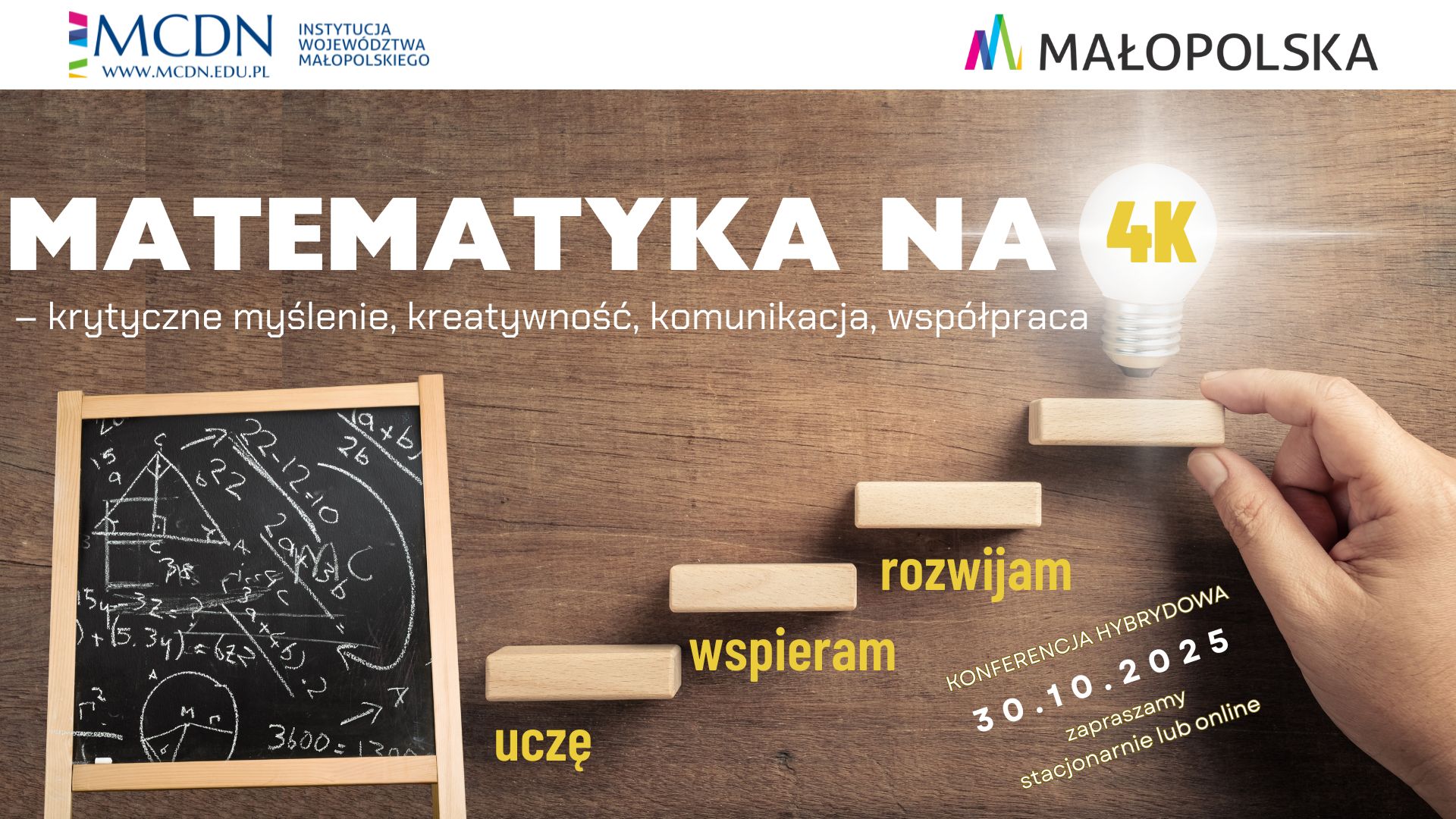 Zapraszamy nauczycieli matematyki wszystkich etapów edukacyjnych do udziału w bezpłatnej konferencji pt. „Matematyka na 4K – uczę, wspieram, rozwijam”, która odbędzie się w 30 października br. w formule hybrydowej. Będzie to wyjątkowe spotkanie nauczycieli, którym zależy na tym, by lekcje matematyki były nie tylko poprawne merytorycznie, ale także angażujące, nowoczesne i pełne sensu dla ucznia.