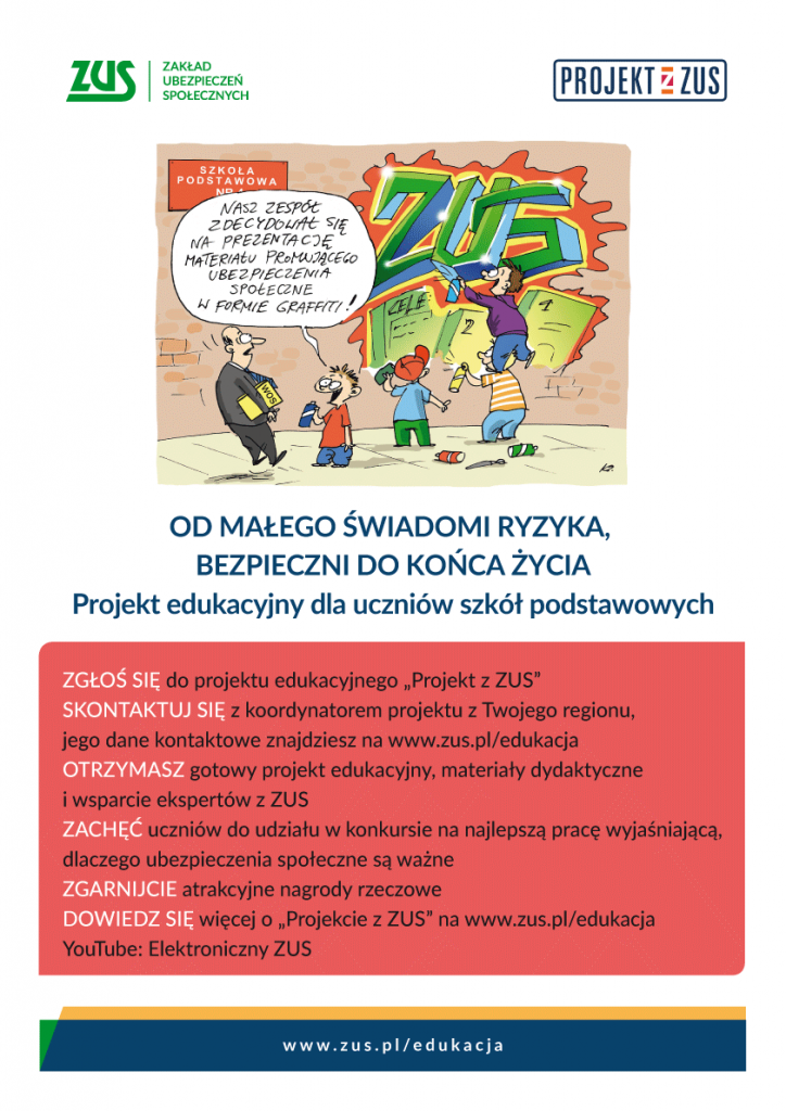 Więcej informacji znajdą Państwo na stronie internetowej ZUS Oferta edukacyjna ZUS.
