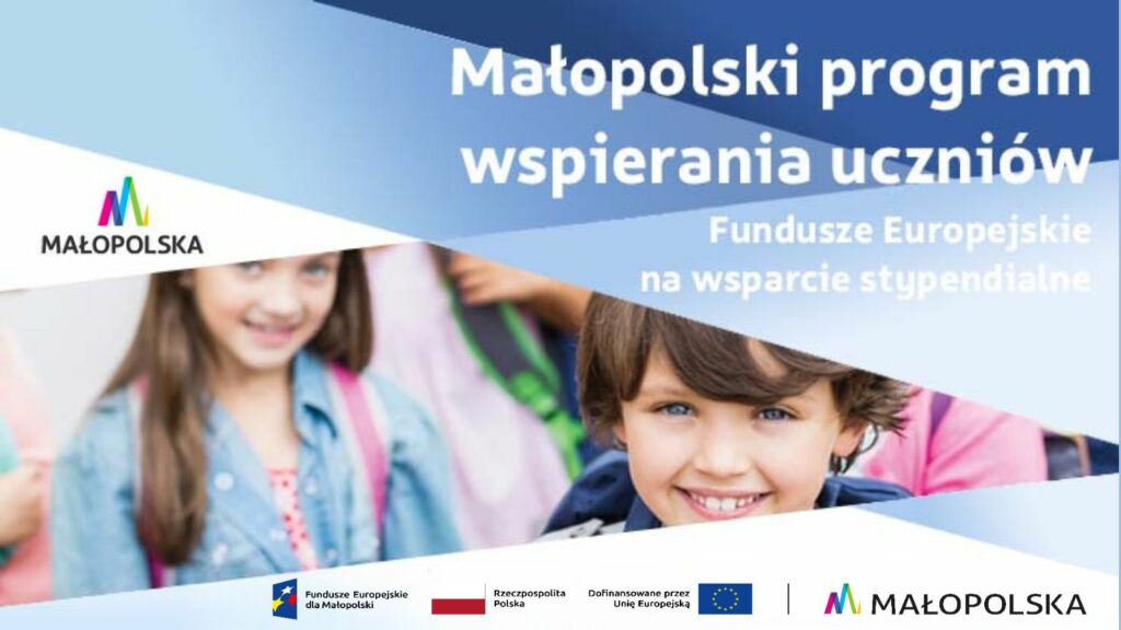W dniu 10 października br. rozpoczął się nabór wniosków w programie wsparcia stypendialnego pn. „Małopolski program wspierania uczniów” wspófinansowanego ze środków Unii Europejskiej, Europejskiego Funduszu Społecznego Plus, Priorytetu FEMP.06 Fundusze europejskie dla rynku pracy, edukacji i włączenia społecznego w ramach Programu Funduszy Europejskich dla Małopolski 2021-2027.