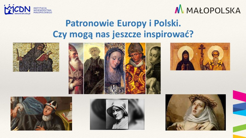 W drugiej części konferencji Andrzej Janczura – nauczyciel konsultant MCDN Ośrodka w Nowym Sączu zaprezentował temat „Patronowie Europy i Polski. Czy mogą nas jeszcze inspirować?”. Nicią przewodnią wystąpienia były fragmenty homilii Jana Pawła II z 16 czerwca 1999 roku.